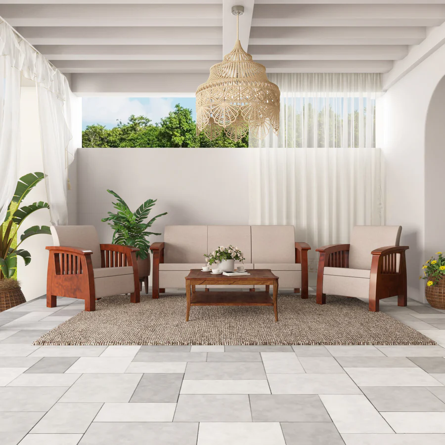 Bring home the Nilkamal Aspire 3+1+1-Seater Sofa Set and experience the perfect blend of elegance and comfort. Designed with a classic look and a wooden finish, it seamlessly complements any interior style. The cushioned seats and backrests with fabric upholstery ensure a cozy seating experience, while the sturdy plastic build promises lasting durability. With ample seating space, this 3+1+1-seater sofa set is perfect for family gatherings and larger seating needs.